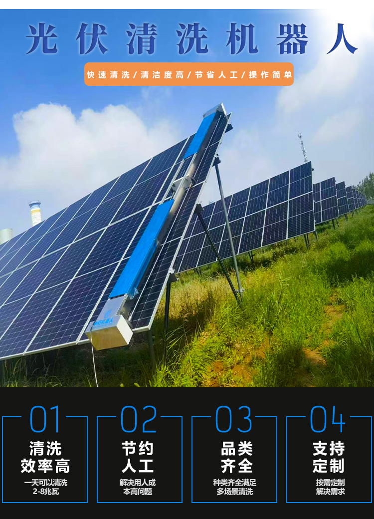 1. 效率更高:機器人可連續作業,單日清洗面積可達人工的5-10倍,尤其適合大型光伏電站。