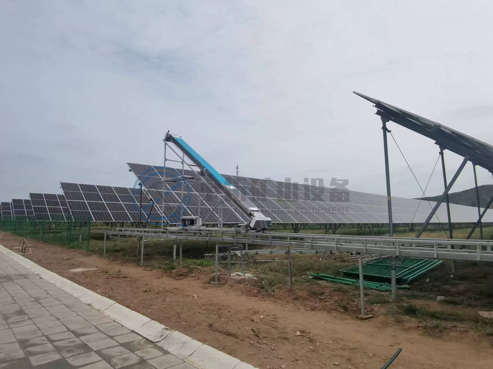 接駁擺渡車式光伏清掃機器人,一臺機器人可以清洗十行,減少成本