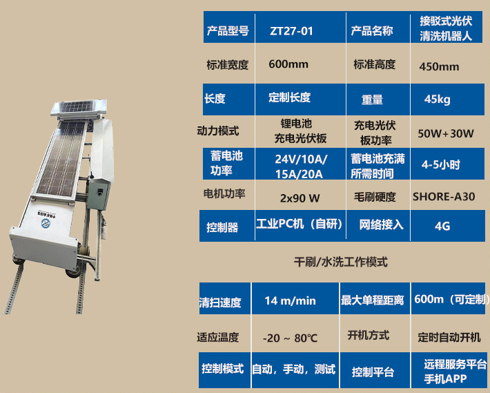 產(chǎn)品名稱:接駁擺渡車式光伏清掃機器人